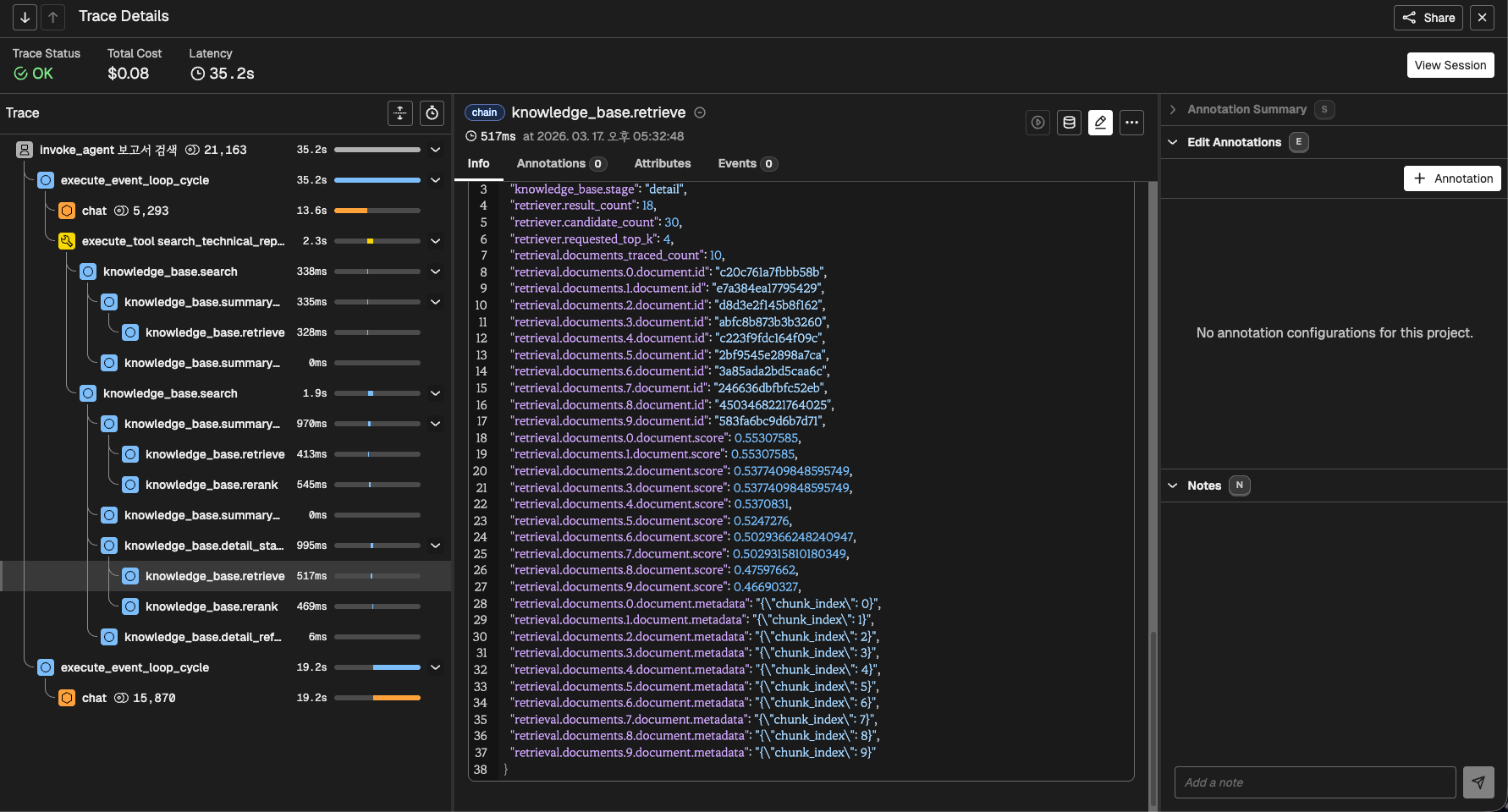 - 모델 교체, 프롬프트 변경, 컨텍스트 검색 방식 변경 등으로 문제 발생시 확인할 방법이 없습니다.