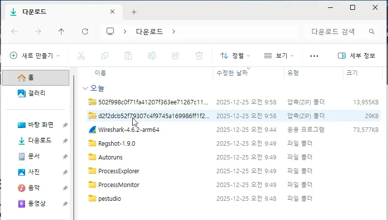 | PE Studio | Windows 실행 파일(PE) 정적 분석 도구. 악성코드 징후, 임포트 함수, 문자열 등 검사 | https://www.winitor.com/download |